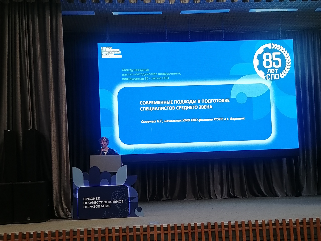 25.09.2025 состоялась Международная научно-практической конференция, посвященная 85-летию системы среднего профессионального образования «Система среднего профессионального образования: традиции, инновации, перспективы», в которой приняли участие: начальник учебно-методического отдела СПО Смирных Наталия Григорьевна, а также преподаватели филиала РГУПС в г. Воронеж Шипилова Юлия Васильевна и Семенихина Марина Александровна.